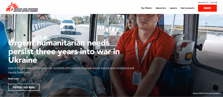 - Bold, Mission-Driven Homepage: Upon visiting the MSF website, users are immediately met with a homepage that exudes urgency and highlights the critical nature of their work. The design features compelling visuals and headlines that draw attention to ongoing crises and MSF's frontline interventions. This immediate immersion serves to engage visitors from the outset.